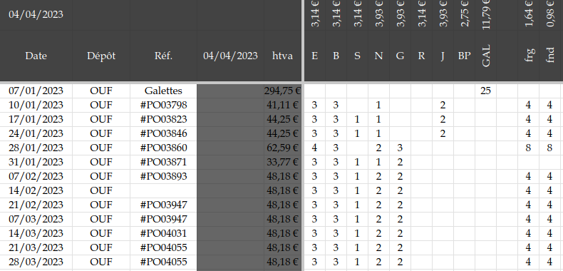 Bonjour,J’espère que tout s’est bien passé à la journée des producteurs.Je n’’ai pas réussi à me libérer pour vous y rejoindre.Voici en pièce-jointe la facture de la dernière livraison PO04106.Sorry, la référence n’apparaît pas sur la facture.Merci et à bientôt.François
