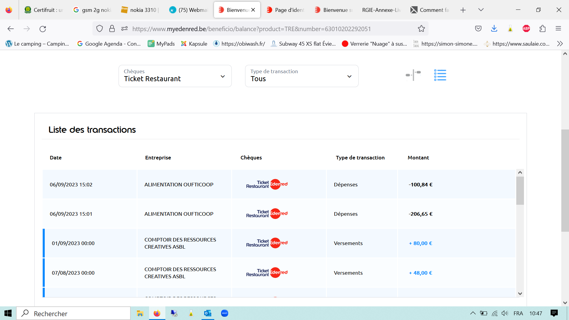 Peux tu vérifier si ton compte Edenred a été débité du montant de 206,65 € et 100.84€ et nous envoyer une copie de cet extrait pour qu'on te rembourse.
