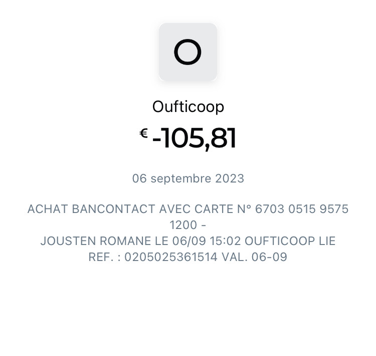 hello,effectivement, je viens de checker, je viens de te faire le virement.Merci et belle semaineChristelleLe lun. 4 sept. 2023 à 09:03, Oufticoop <reply@oufticoop.be> a écrit :Bonjour Christelle,
